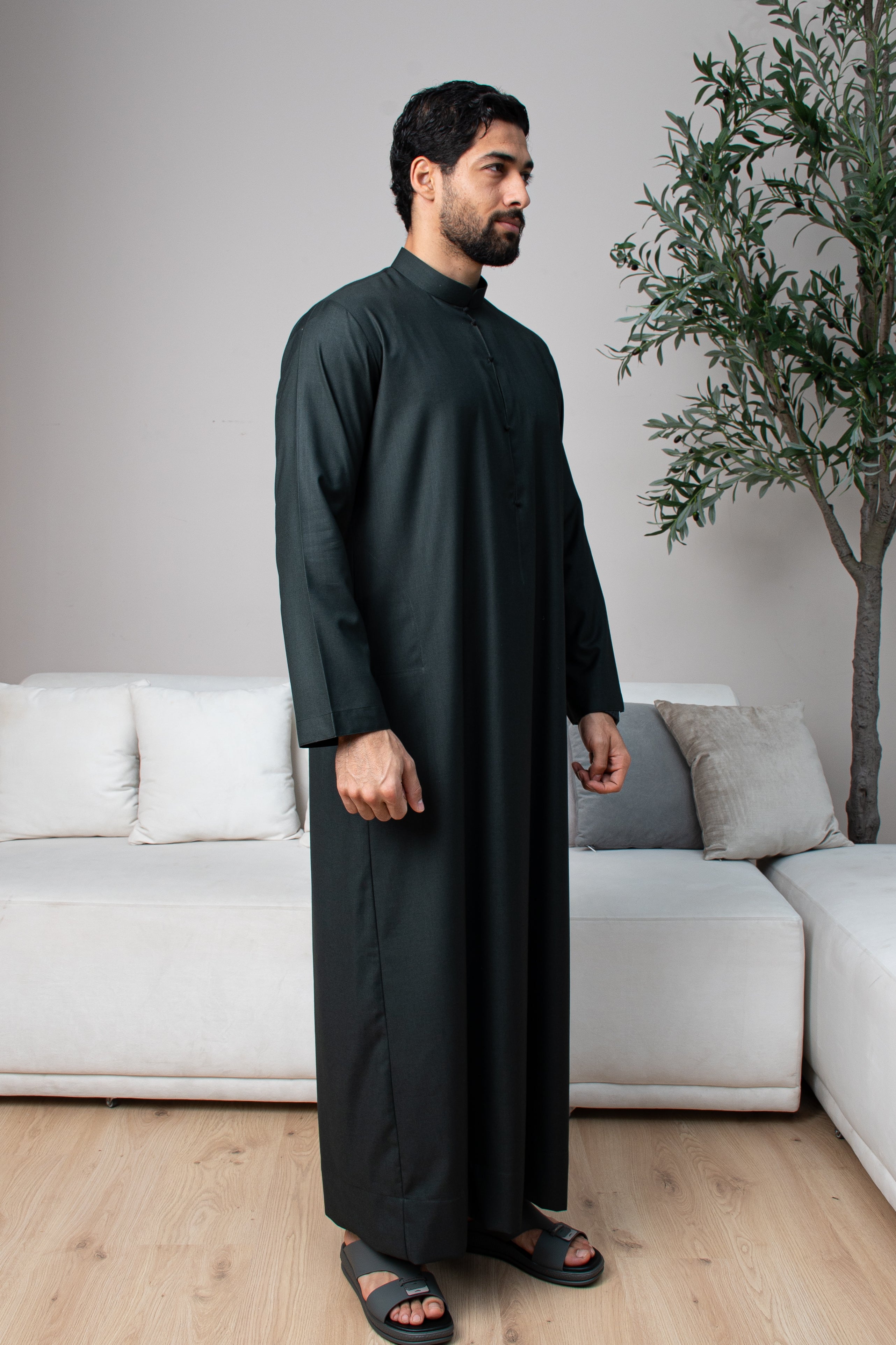 Indulge in the perfect blend of tradition and luxury with our premium Bahraini thobe, crafted for those who appreciate true elegance. Made from thick, high-quality Italian wool, this thobe offers an unparalleled feel of refinement, durability, and warmth.