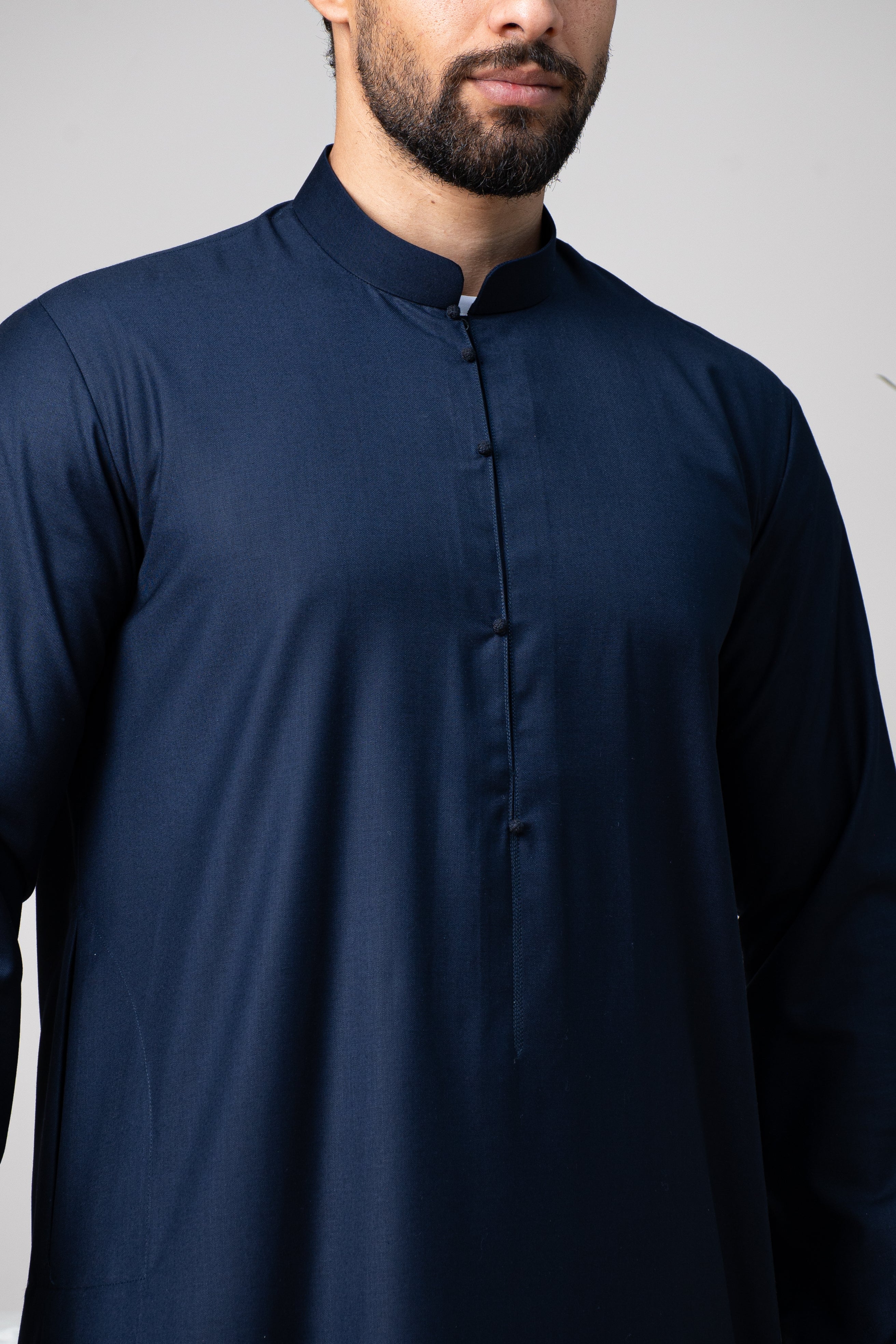 Bahraini Thobe – Luxurious Italian Wool in Oxford Blue