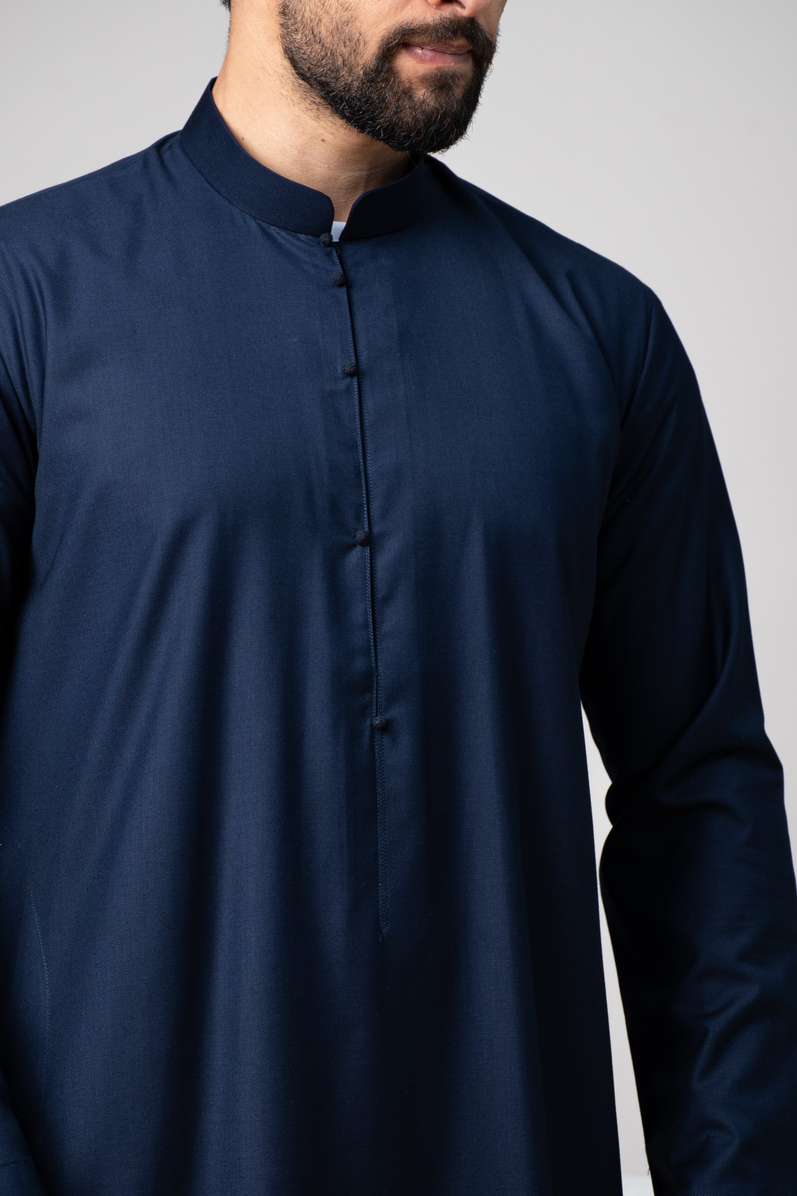 Presented in a Oxford Blue hue, it exudes sophistication and timeless charm, making it an ideal choice for formal occasions and distinguished everyday wear. The structured drape of the fabric enhances its regal appearance, ensuring a flawless fit and supreme comfort.