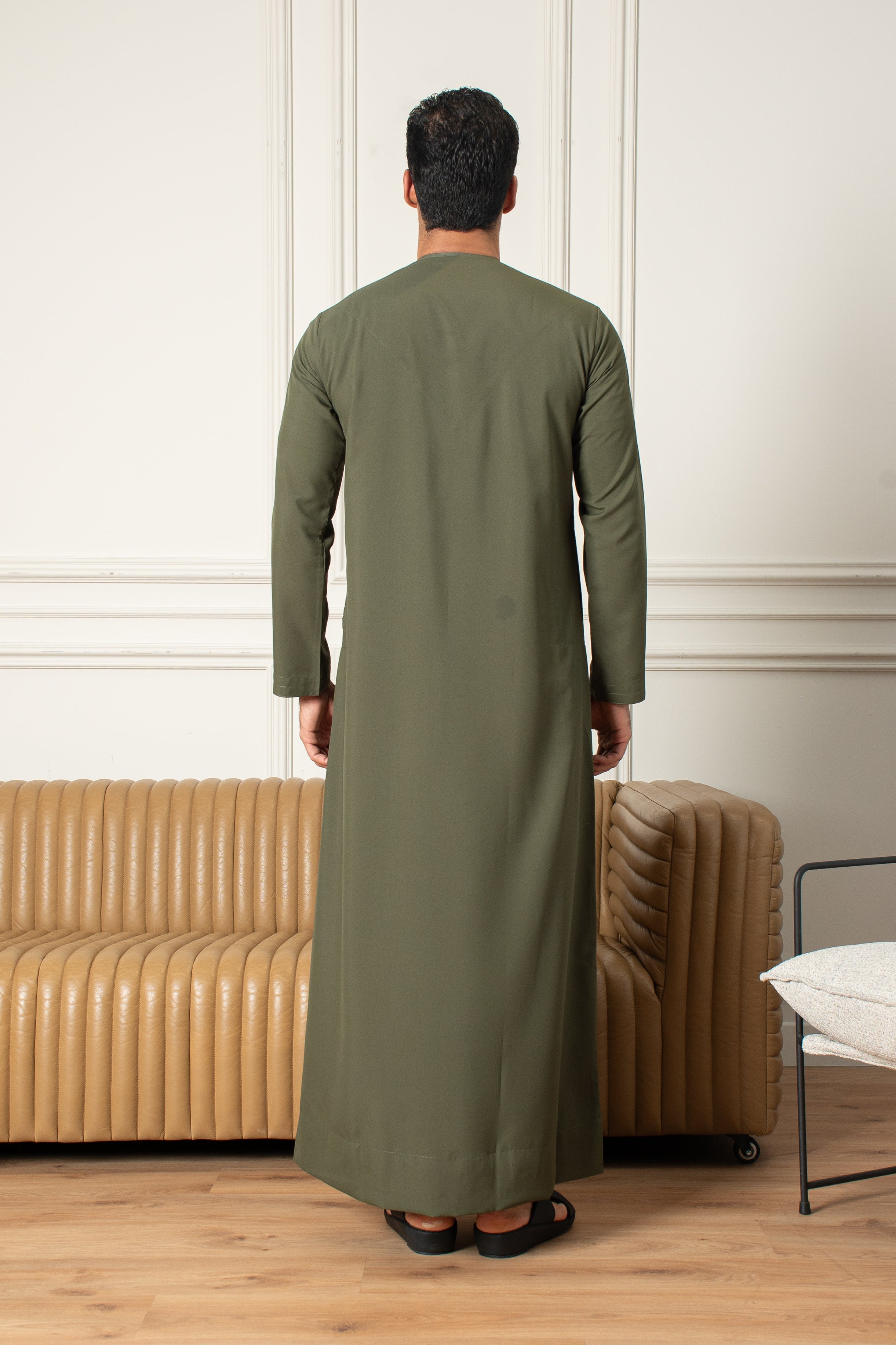 Elevate your wardrobe with the understated elegance of the Essentials Emirati Thobe in Olive Green. Crafted for comfort and designed for timeless style, this thobe is a perfect blend of traditional Emirati craftsmanship and modern simplicity. The soft, breathable fabric ensures you stay cool and comfortable throughout the day.